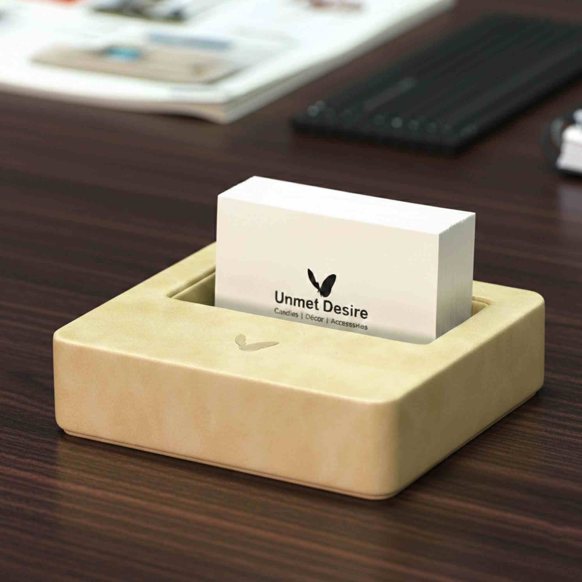 Visiting Card Holder for Desk | Faux Leather | Square | Classic | Tan