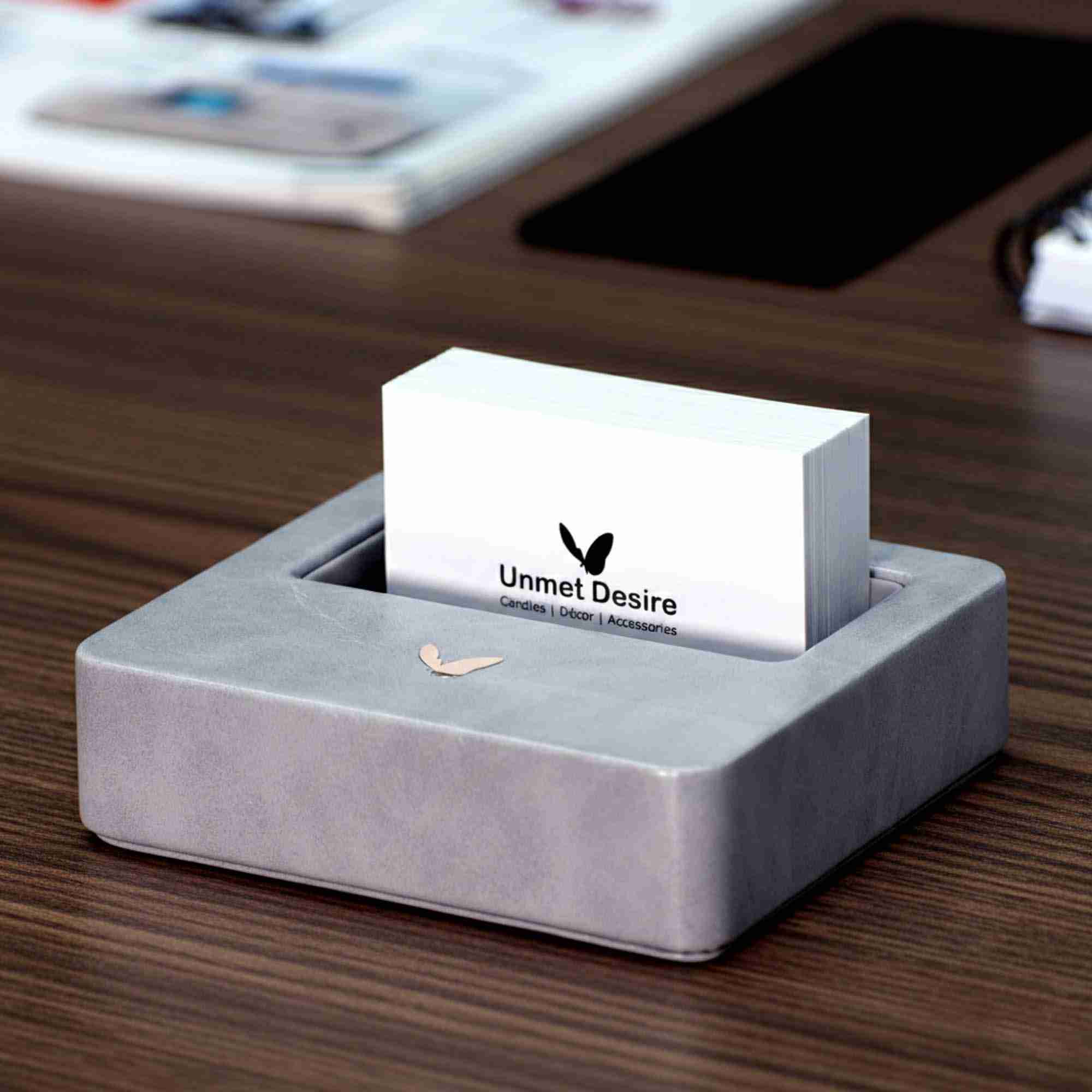 Visiting Card Holder for Desk | Faux Leather | Square | Moderno | Grey