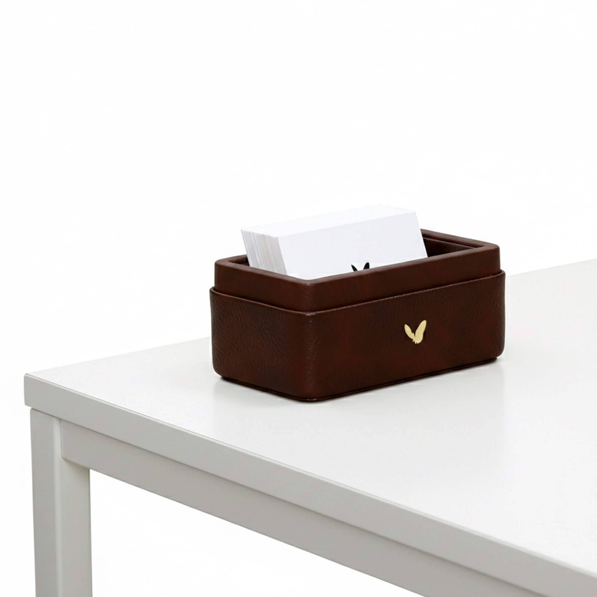 Visiting Card Holder for Desk | Faux Leather | Square | Classic | Brown