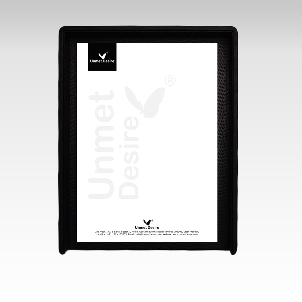 This A4 Size Paper Tray / Letter Tray / Desk Organizer from Unmet Desire is perfect for organizing your office and keeping your desk looking neat and tidy. It features a premium faux leather exterior with a chevron pattern in black for a sophisticated and stylish look. The tray is designed to be stackable, allowing you to maximize organization and space. It has an internal size of M and can fit A4 size papers without any hassle. The tray also comes with a handle for easy transport.