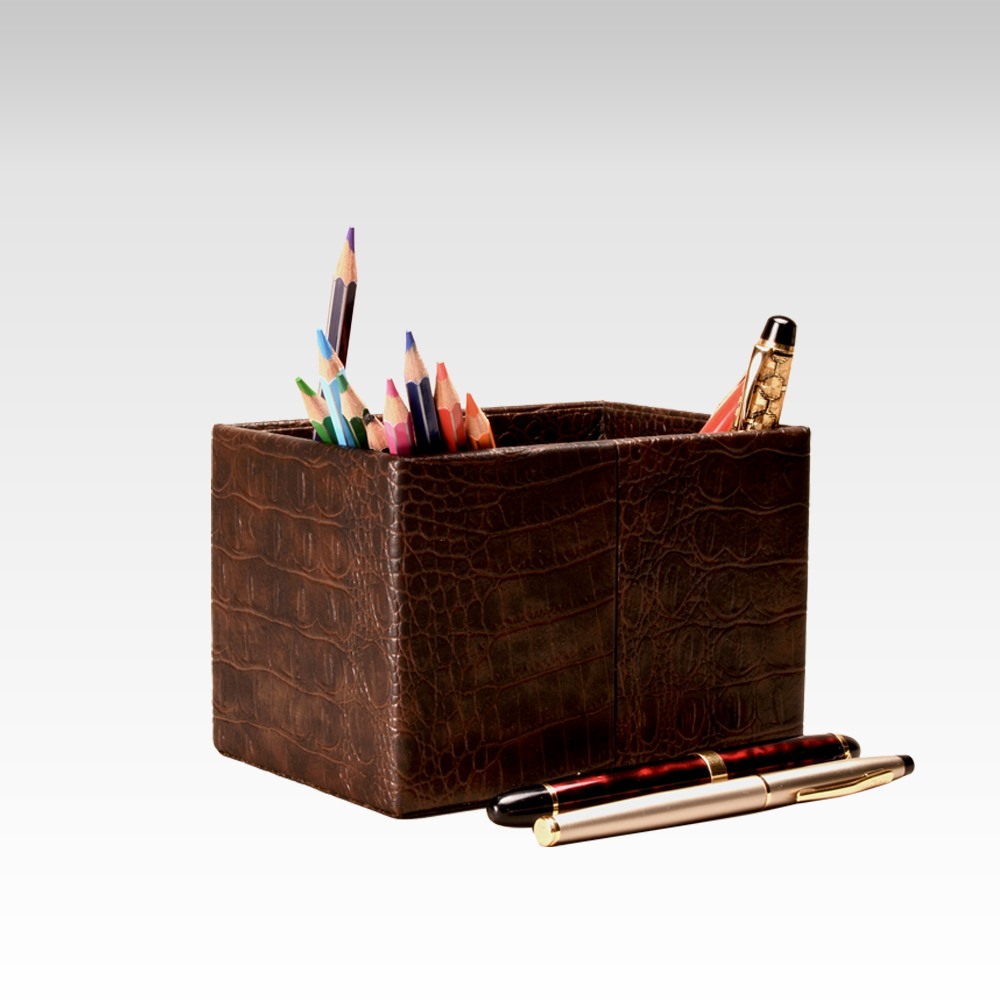 Pen/Pencil Holder | Faux Leather | Croco Series | Brown | Large