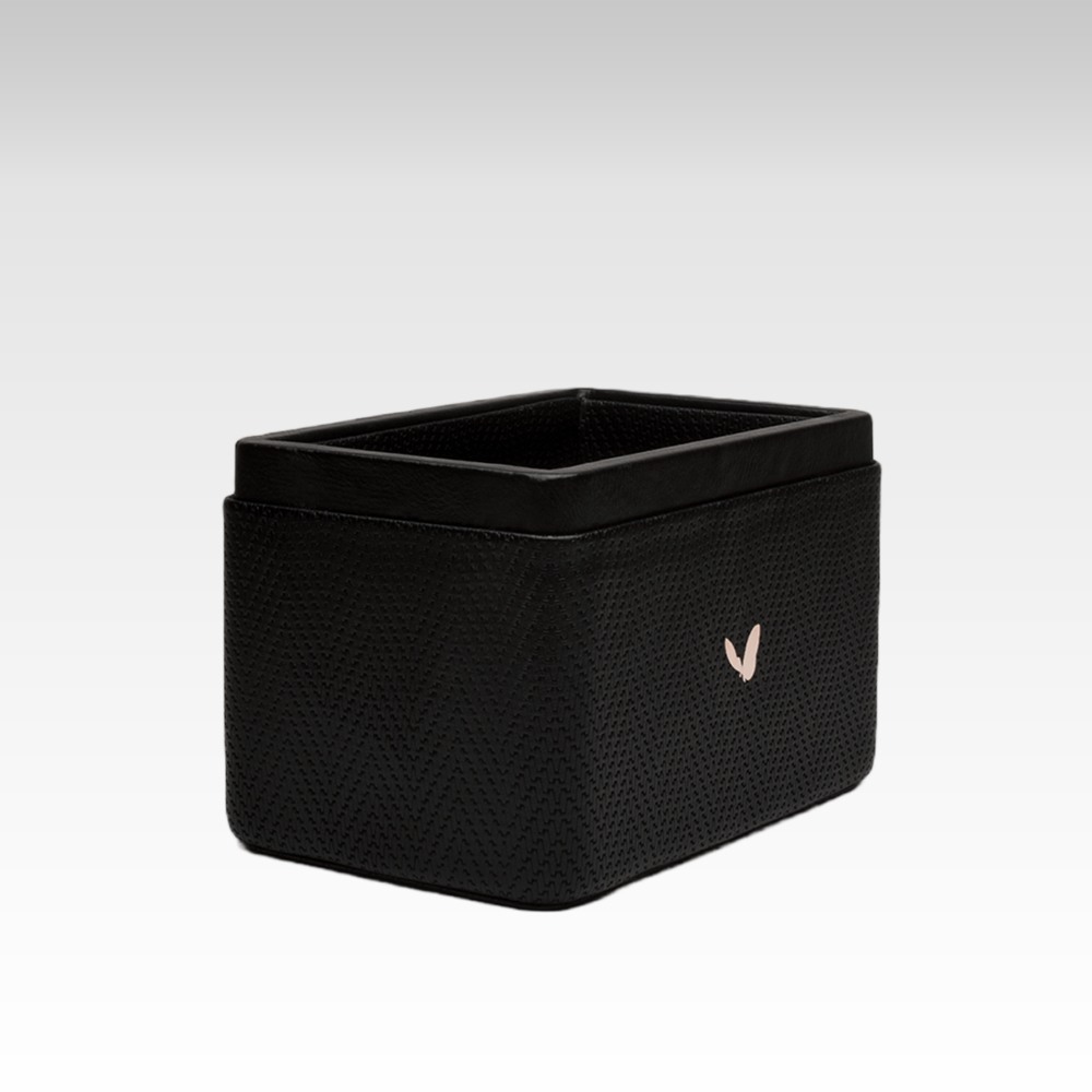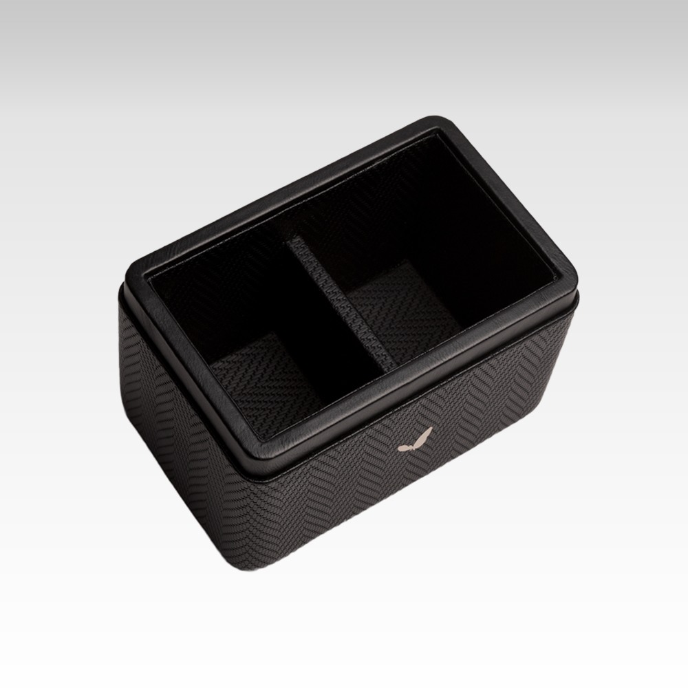Ultra Premium Pen/Pencil Holder / Desk Organizer / Accessories in Premium Faux Leather | Rectangular | Size: 3.5x5.5x3.5(H) Inches | Two Compartment | Chevron Series (Black)