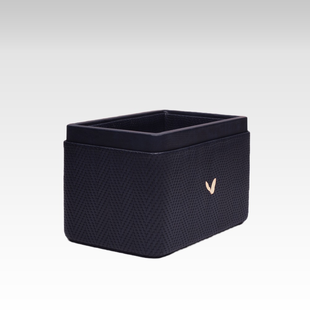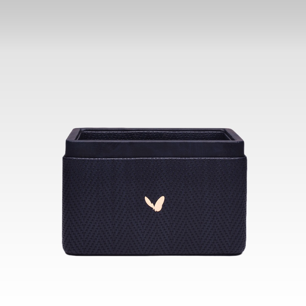 The Ultra Premium Pen/Pencil Holder by Unmet Desire is the perfect addition to any desk or workspace. This holder is made from premium faux leather and is rectangular in shape, measuring 3.5x5.5x3.5(H) inches. It has two compartments, making it ideal for organizing pens, pencils, and other accessories. The holder comes in a beautiful blue chevron series, making it a stylish addition to any desk.