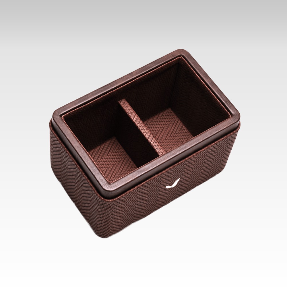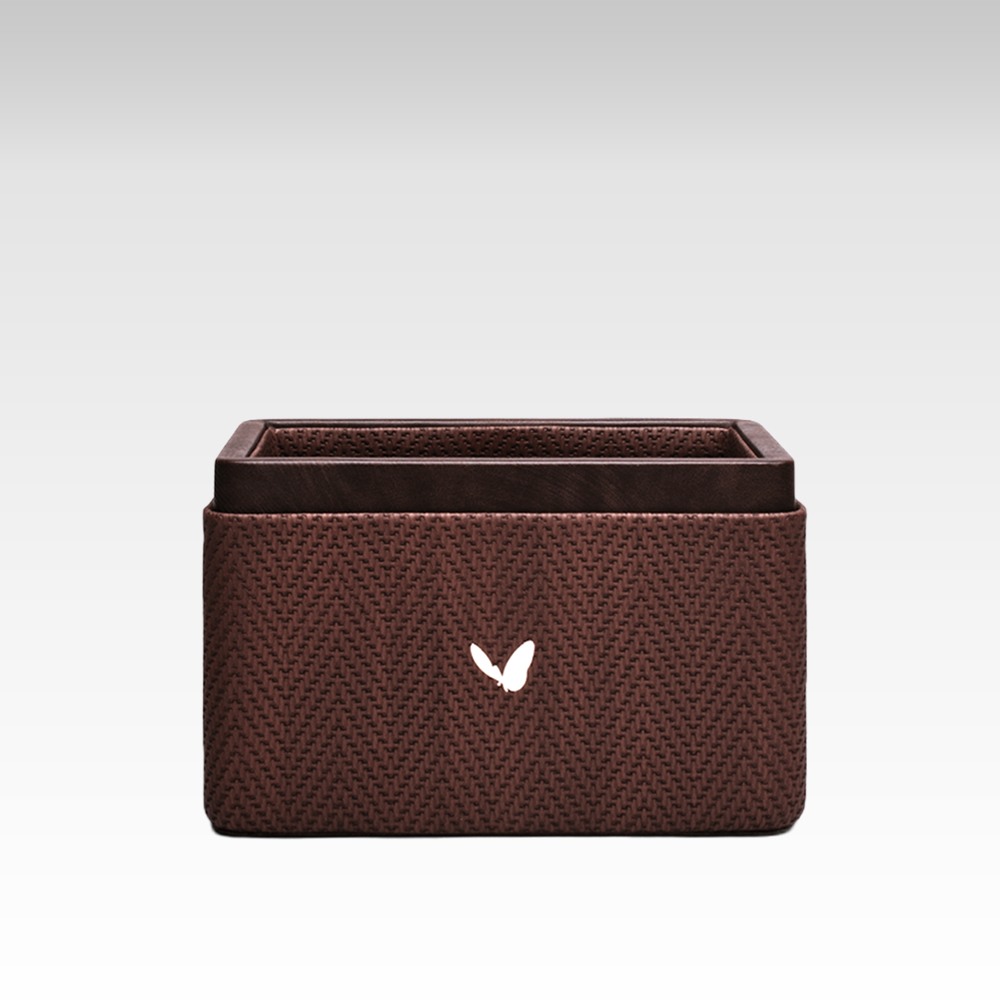The beautiful primary color of this pen/pencil holder is a rich and classic brown, making it easy to coordinate with any existing decor. The faux leather material adds a luxurious touch to any office space and makes it a great addition to any desk. The two compartments keep everything neat and organized, giving you easy access to your pens, pencils, and other desk items.