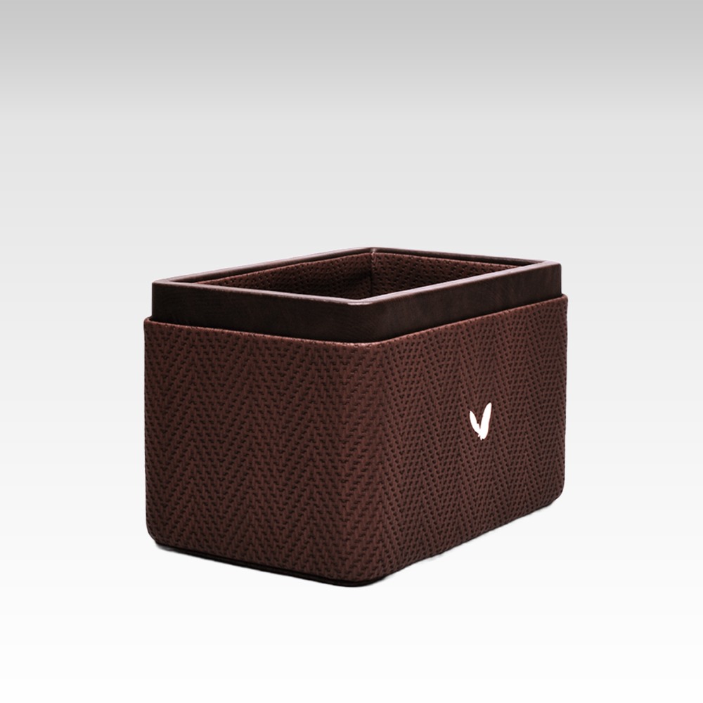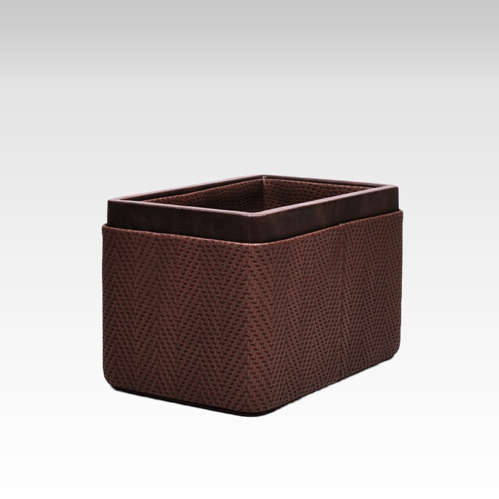 Introducing the Ultra Premium Pen/Pencil Holder/Desk Organizer from Unmet Desire! This beautiful accessory is crafted from premium faux leather and features a unique chevron pattern and two compartments for storage. It is rectangular in shape and measures 3.5x5.5x3.5(H) inches, making it the perfect size for any desk or countertop.